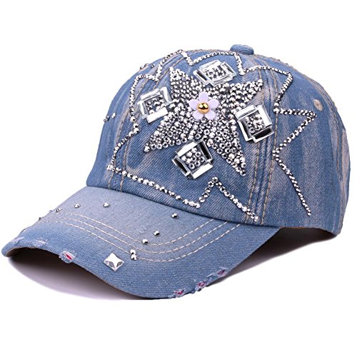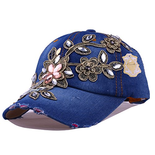 -. Title : CRUOXIBB Women Cotton Cap Rhinestone Flower Fashion Baseball Hat