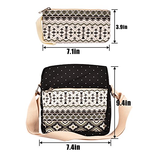 -. Feature : Material: Canvas / Backpack Dimensions:17.3" x 6.3" x 12.2"(up to fit 14" laptop). Shouler Bag Dimensions:9.4" x 2.8" x 7.4". Handbag/pencil case Dimensions:7.1" x 0.4" x 3.9". / 3 bags offer more convenience for you, Backpack Compartments: 2*side pockets, 1*front zipper pouch, 1*inner zipper pocket, 3*inner organizer pockets, 1* laptop/tablet compartment (up to fit 14" laptop)Shoulder bag to take your cellphone, keys and handbag/pencil cases with your money and some cards. / Adjustable shoulder straps of Backpack and Shoulder Bag for good carrying, it is comfortable for you / Convenient and Durable. Personalized stylish bag, ideal for service as backpack, rucksack schoolbag, casual backpack for daily use at school, work, weekend getaway, occasional travel, gyms, hiking etc. High capacity suits college students, teen girls boys and adults