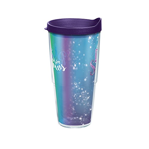 Tervis When It Rains Look For Rainbows Wrap Tumbler with Royal Purple Lid, 24 oz, Clear