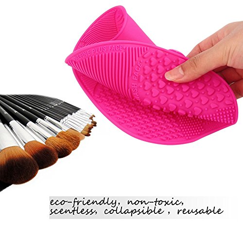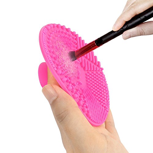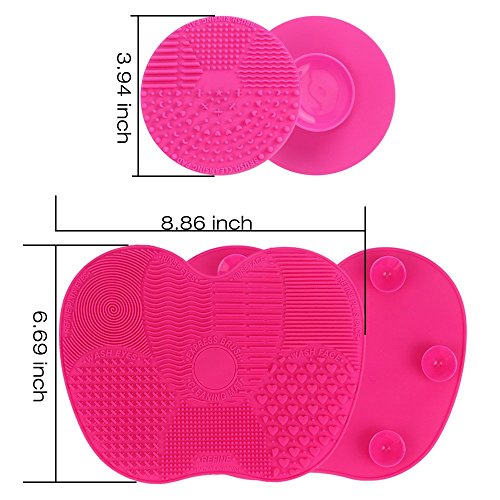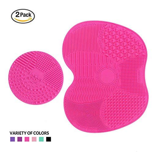 Makeup Brush Cleaning Mat, ESARORA Makeup Brush Cleaner Pad Set of 2 Cosmetic Brush Cleaning Mat Portable Washing Tool Scrubber Suction Cup (Pink)