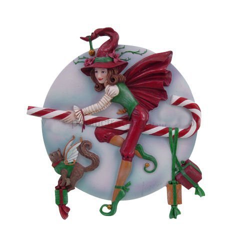 PTC Pacific Giftware Candy Cane Riding Christmas Holiday Witch Statue Figurine, 9" H
