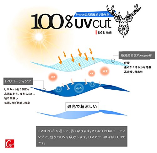-. Feature : 特殊TPUコーティングでUVカットは100% / 遮熱効果:高温に耐えられ遮熱効果がございます。 / 抗菌&カビ防止:TPUの剤実で折り畳み傘にありがちな臭くなったり、カビ が発生したりすることを軽減するできます。 / 吸水性のある専用ポーチが付属しているので、 濡れた傘が荷物を濡らしてしまう悩みはもうありません! / 重量:140g/ 開放時直径:53cm x 6K/ 親骨材質: 炭素繊維/ 親骨本数:6本/表面素材:ポリエステル