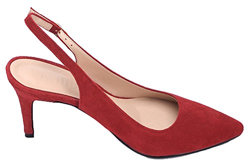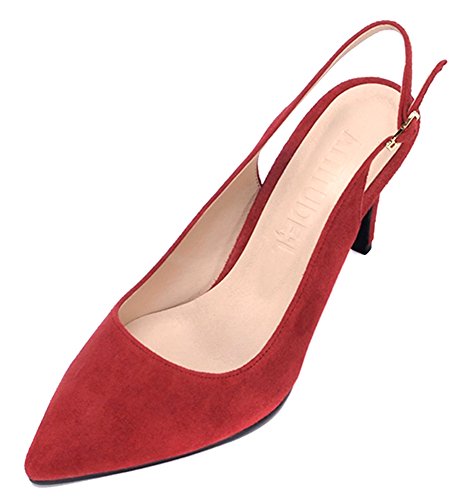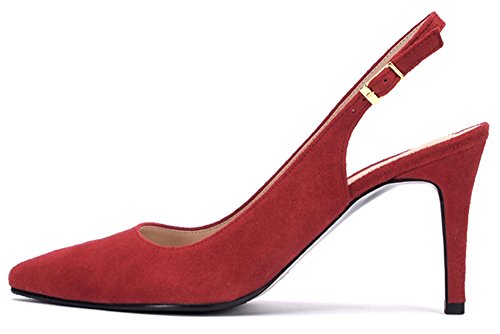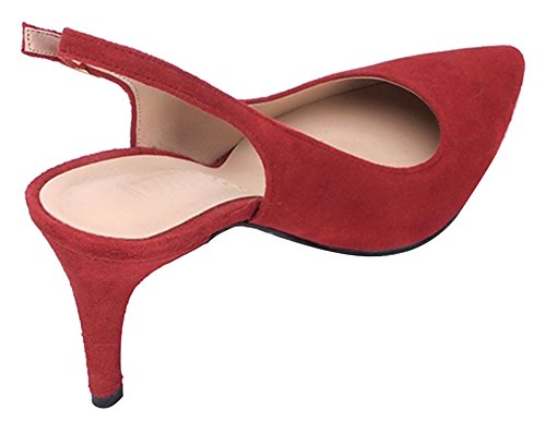 (ATTITUDE;L)/Women's/Pumps/DIRECT FROM USA/ATTITUDE;L Women’s Suede Wine Red Pointed Toe High Stiletto Heel Slingback Pumps Shoes