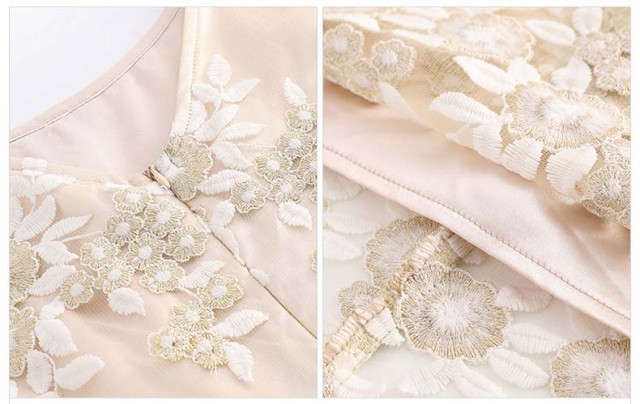 ライトゴールドのゴージャスなパーティードレス。