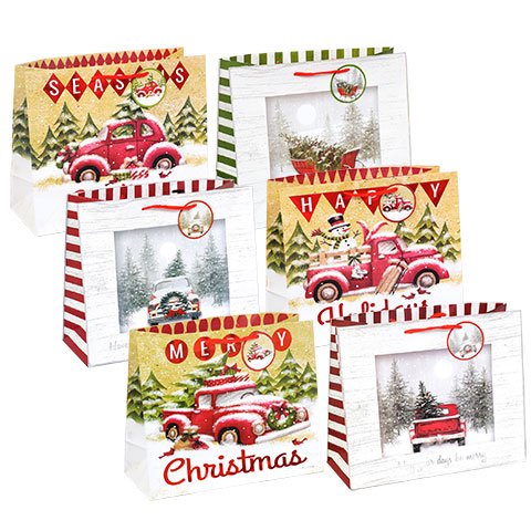 Christmas Gift Bag Bundle Set of 3 Vintage Style Holiday Design 12 x 10 x 5