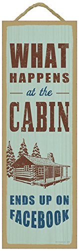 - Lake Inspired Wooden Sign Plaque; What happens at the cabin, ends up on Facebook