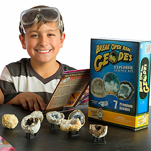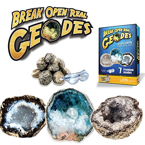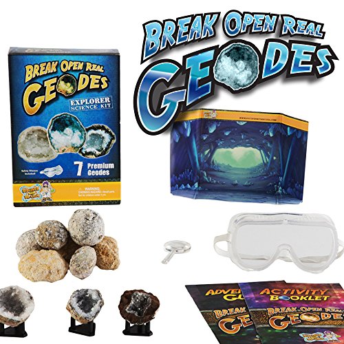 - Feature : This Explorer Geode Kit Features 7 Real Geodes / Kit Contains 3 Different Types of Geodes so that you can compare different crystal formations / Full-Color Adventure guide explains all about how geodes were formed and lets you identify the crystals inside / Winner of multiple awards for the quality of the geodes inside this kit / Activity booklet contains 10 wonderful puzzles and games for hours of extra fun and learning