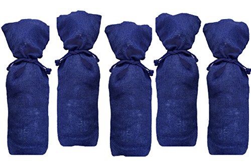 Navy Blue Jute Burlap Wine Bags with Drawstring - 5 Pack by Outside the Box Papers
