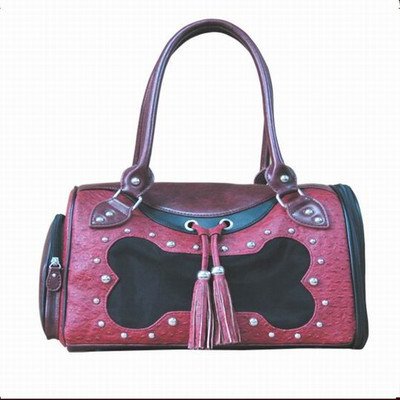 -. Title : Backbone Faux Leather Pet Carrier, Red