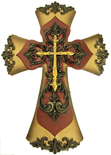 Deleon Gold and Red Tone Layered Wall Cross Decoration, 12 Inch