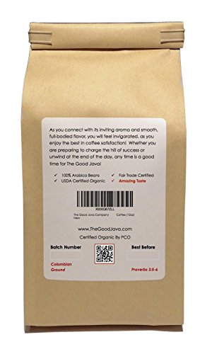 The Good Java Company - Gourmet USDA Organic Fair Trade Colombian Small Batch Roasted Coffee (Ground) Net Weight 12oz