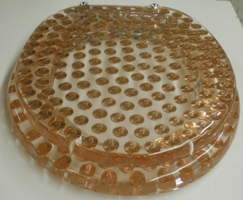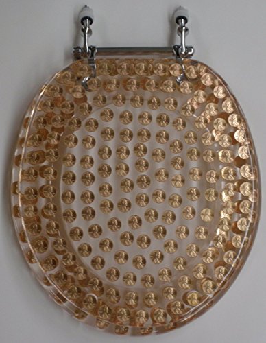 -. Brand : Centur -. Color : Chrome -. EAN : 7487790739908 -. Feature : 1 brand new PENNIES COIN THEME LUCITE RESIN TOILET SEAT in STANDARD ROUND SIZE. This is a hard toilet seat with chrome hinges is bound to get you a lot of comments from friends and relatives. This toilet seat contains real pennies, it is made in the USA and is a much heavier quality than the imported imitations. -. Label : Centur -. Manufacturer : Centur -. ProductGroup : Home -. ProductTypeName : HOME_BED_AND_BATH -. Publisher : Centur -. Size : Standard Size Round (14.5" x16") -. Studio : Centur -. Title : REAL U.S. PENNIES COINS MONEY LUCITE RESIN TOILET SEAT , Standard Size Round Penny Toilet Seat (14.5" x16")