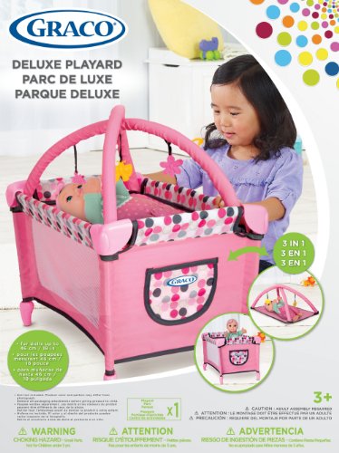 - Feature : Little girls will love playing with doll or laying them to sleep in this adorable Graco Playard / The Graco deluxe playard fits dolls up to 16'' / Great for girls who want to play Mommy