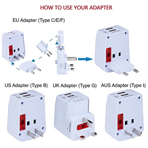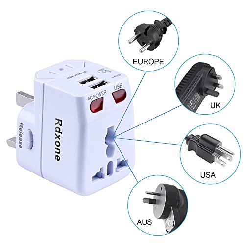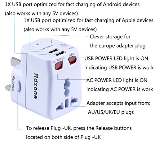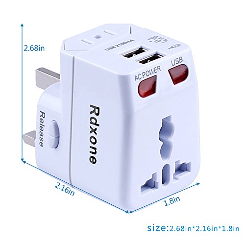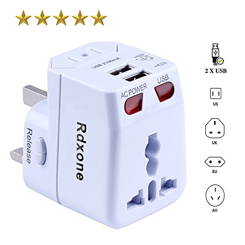 Rdxone Universal World Travel Adapter with 2 USB- Europe, Italy, Ireland, UK, US Plug Adapter- Over 150 Countries& Travel Power Converter Adapter Wall Charger Plug Kit for iPhone, Android (White)