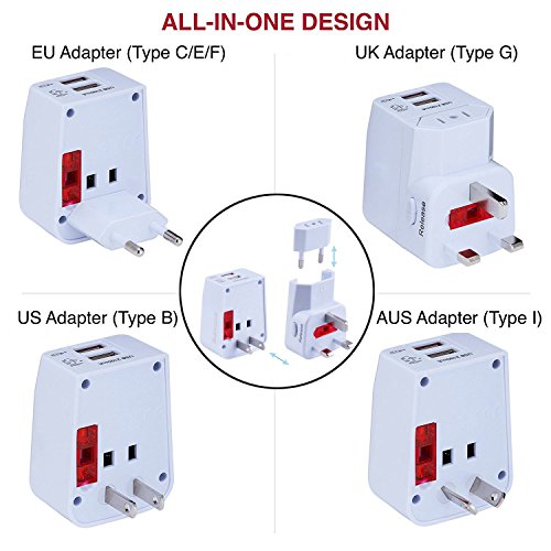 - ✪ International Charger- Travel adapter plug universally compatible in over 150 countries. It can be converted plug for Europe, Ireland, Italy, Swiss, UK, Germany, France, Spain, Greece, Canada, USA, Mexico, Brazil, Chile, Peru, Netherlands, Sweden, Norway, Saudi Arabia, Turkey, Egypt, China, Russia, Japan, Malaysia, Hong Kong, Taiwan, Singapore, New Zealand, Korea, Tha, Indonesia, Australia, and so on.