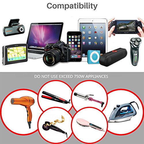 - ✪ Fast Charging - We have FCC CE and RoHS Certified safety system, simple in operation, user-friendly, and has a unique and sleek design. More powerful compatibility and security, optimized to deliver fast, safe and efficient charging.(100V - 250V input voltage, 300 Watt. max. at 100V, 750 Watt. max. at 250V, does not support voltage transformation).