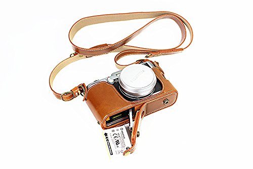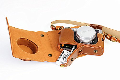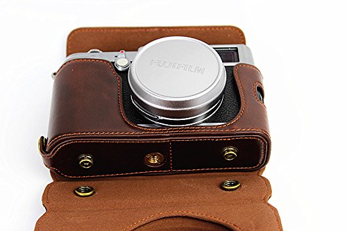 MoreGift4U Voller Schutz Bodenoffnung Version Schutz-PU-Leder Kamera Tasche mit Stativ-Design-kompatibel fur Fuji Fujifilm X100 x100s X100M x100t mit Schulter-Ansatz-Bugel-Gurt