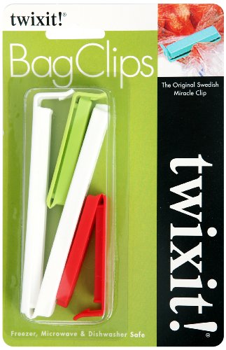 Twixit! Linden Sweden Bag Clips, White/Yellow/Red/Lime, Set of 1 Large and 2 Small