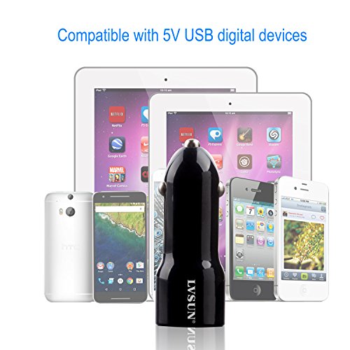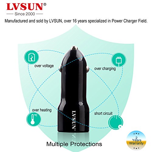 LVSUN Car Charger - Premium Quality, Quick Charger 2.0 - USB Car Charger Adapter for iPhone 7 / 6s / Plus, iPad Pro / Air 2 / mini, Galaxy S7 / S6 / Edge / Plus, Note 5 / 4, LG, Nexus, HTC and More