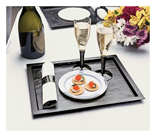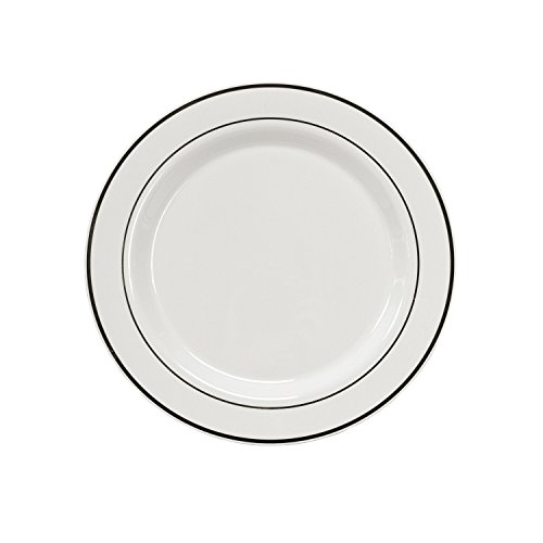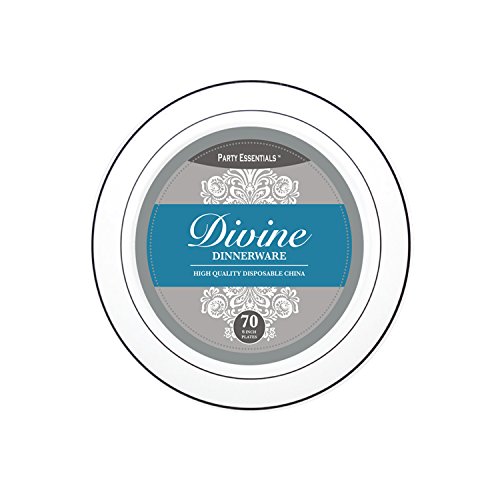 Party Essentials 70-Count Hard Plastic 6" Divine Dinnerware Disposable China Bread and Butter/Appetizer Plates, White with Silver Band