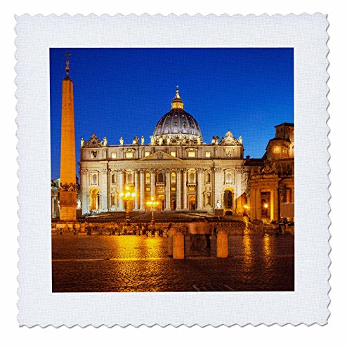 3dRose qs_208016_3 Twilight at St. Peters Basilica, Vatican City, Rome, Italy Quilt Square, 8 by 8"