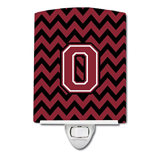 Caroline's Treasures Letter O Chevron Garnet and Black Ceramic Night Light, 6 x 4", Multicolor