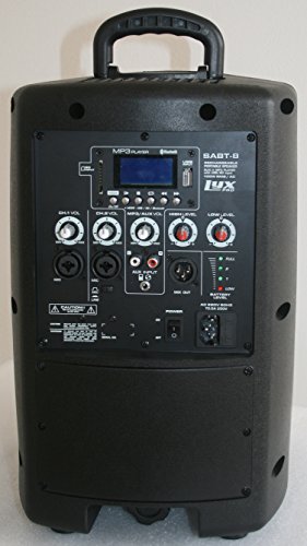 Studio : LyxPro Publisher : LyxPro Binding : Electronics Product Description Make your music as free as your spirit! Escape the day's monotony with the LyxPro SABT-8, a portable speaker that has you freestyling with the best of them. Enjoy numerous ways to connect to your music library by plugging in an SD card, a USB cable, or by connecting over Bluetooth for the most convenient wireless experience. The 8" two-way active speaker and basic EQ for MP3 means you have the best sound arrangement for any genre of music. The system even comes equipped with mic, RCA and line inputs for the most versatile equipment you'll ever own. The intuitive controls guarantee a seamless experience for both your freestyle session in the park and the block party on Sunday. Music makes the moment and with this speaker, every moment is yours to master. What You Get ? 1x 8" 2-way speaker ? Built in MP3 player: Bluetooth, SD, USB ? Onboard, intuitive music control ? Mic/Line XLR ¼" and RCA auxiliary ports Specs Details Weight: 17 lbs. (7.8kg) Dimensions: 8.6"x 10.6" x 16.3"(220x415x270mm) MP3 player mode battery life: up to 7 hours Microphone mode battery life: up to 8 hours Charging time: 4 hours Woofer: 8" dual voice coil (4ohms 4ohms) Tweeter: 1"(8ohms) Output: RMS 50W (dual amp) Battery: 11.4V 2200mAh Lithium Line pad switch: -20dB AC power supply: 120V/60Hz Input: 2x Mic/line (XLR-1/4" combo jack) Aux (RCA, 3.5mm stereo mini phone jack) Output: MIX (XLR) DSP EQ control: Bass control: 15dB / -15dB Treble control: 15dB / -15dB How to Enjoy ? Set up speaker and sound source ? Find the perfect track for the moment ? Adjust controls for best sound quality ? Press play and enjoy 0