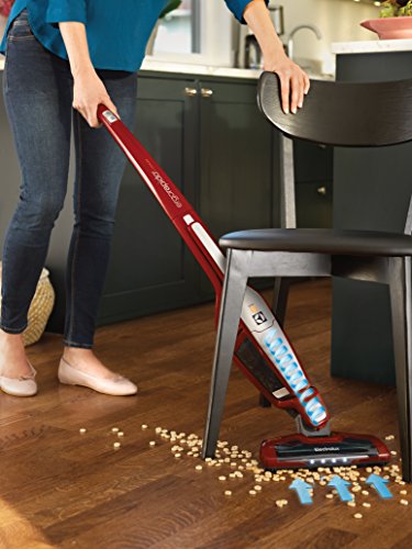 The Ergorapido lithium ion brushroll clean Xtra 2-in-1 cordless offers two vacuums in one stylish design for cleaning on and above your bare floors. The 14.4V lithium ion battery gives you high performance for optimal cleaning performance, a long run time and fast charge. Electrolux patented self-cleaning brushroll removes tangled hair from the brushroll with the touch of a button. Thoroughly clean the bare floors in your home with the motorized brushroll and cordless convenience. Clean above the floor with the detachable handheld vacuum. The crevice tool and dusting brush store conveniently in the handle so you can clean crevices, stairs and flat surfaces in one easy step. 180 degree easy steer maneuverability offers smooth turning and movement, helping you twist and turn around furniture with ease. The Ergorapido lithium ion brushroll clean Xtra stands on its own for those unexpected interruptions and the lightweight, bag less design makes it easy for you to get around-get up and down stairs and carry from room to room. Plus, led headlights help you see the dirt so you don't leave any behind.Feature