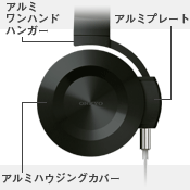 オーバーヘッドタイプのハウジング部分にはアルミを使用し、Hi-Fiオーディオのボリュームコントロールをイメージしたデザインです。