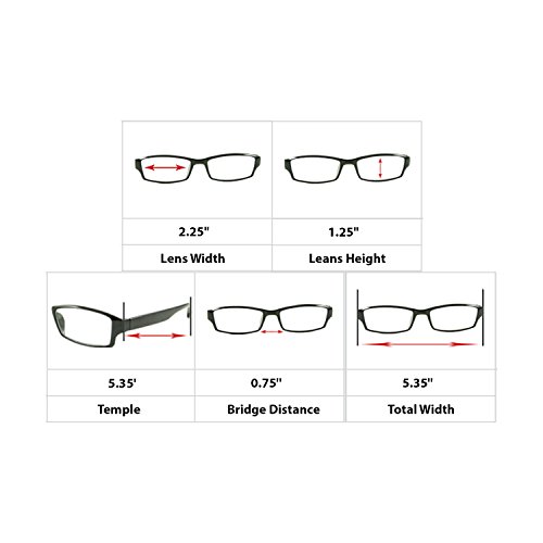 -. Feature : VALUE IS ONLY THE BEGINNING: Aren't you tired of paying steep P.R.Ices for flimsy glasses that look cheap? Allow your personal style to shine through with 4 Pairs of superbly crafted, ingenious stylishly designer reading glasses. Wearing these reading glasses at home, in bed, at the office, or wherever you need them, means you'll always look sharp, and see sharper! / DURABLE BEYOND MEASURE: We paid close attention to the "Screws Fell Out", "SP.R.Ings Fell Off", and "Arms Snapped Off" comments you'll see on other product reviews and strategically ENGINEERED these reading glasses to withstand the daily elements with Sure-Flex Comfort SP.R.Ing Arms and Dura-Tight Screws. The result? Reading glasses which outlast and outshine the cheaply made, overP.R.Iced copycats marketed by the competition. / ENHANCE YOUR VISUAL APPEAL: You know how you look is as important as how clearly you can see. It's frustrating that most reading glass manufacturers ignore fashion. That's why these designer reading glasses were ergonomically crafted with a sleek, modern design that focuses on fashion, to enhance the attractiveness for both men and women. These simple glasses will enrich your head-to-toe-look. Just look at them! It's easy to see why so many customers say, "I take a pair with me everywhere". / CRYSTAL-CLARITY WITH QUICK-CLEAN PROTECTION CLOTH: Think back to all those times you've spent looking for something to clean your reading glasses. Each Pair of our reading glasses comes with its individual micro-fiber cleaning cloth bag to remove those annoying smudges before they get in the way. / COMFORT GUARANTEE: If you've purchased reading glasses online before you probably know what we mean by "the wrong fit". Pinchy-tight, or too-loose reading glasses which slide down your nose are enough to drive anyone crazy, which is why we designed these reading glasses to support your ultimate comfort; with durable sP.R.Ing hinges which easily expand hug your temples, for the perfect fit, every time; backed by a 180 day no questions asked money back guarantee.