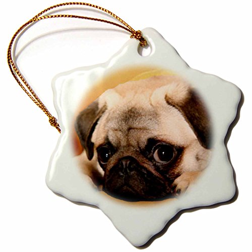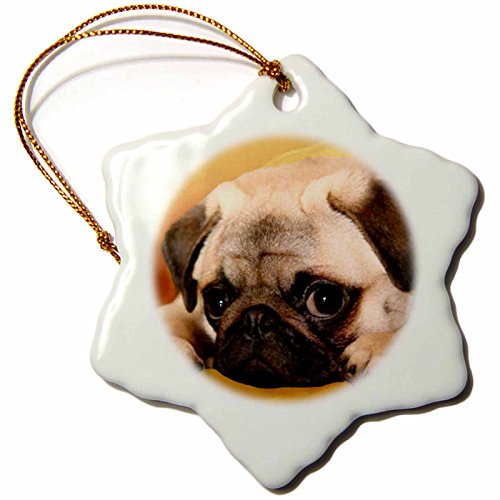 3drose Pug Snowflake Porcelain Ornament, 3-Inch
