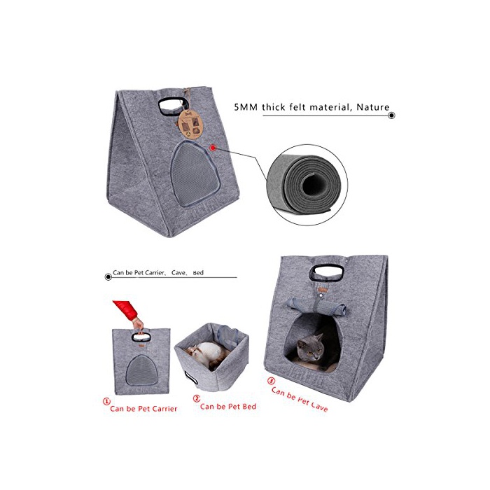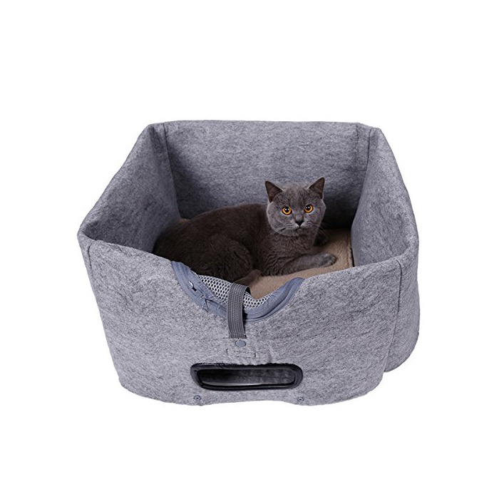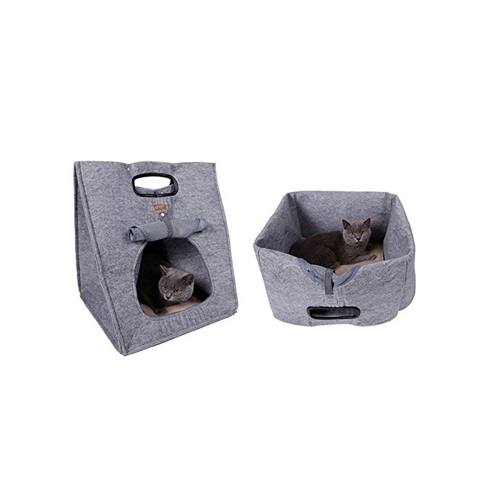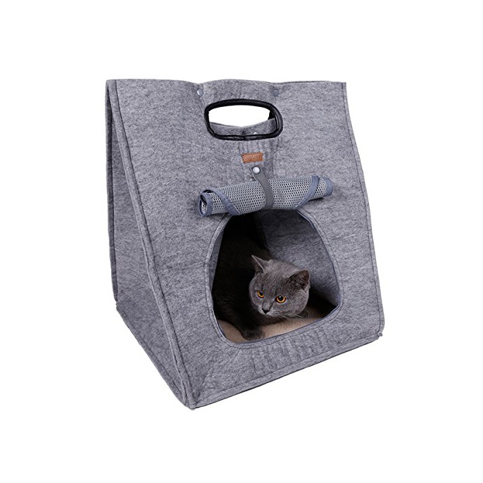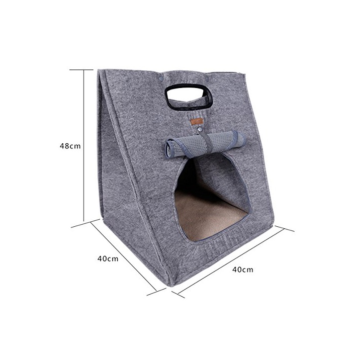 JUSH 다기능 펠트묘 하우스 접어 개집 캐리 백 애완동물 외출용 매트 부착 (그레이)