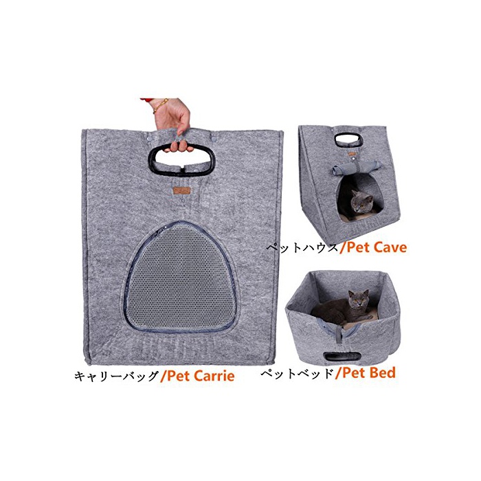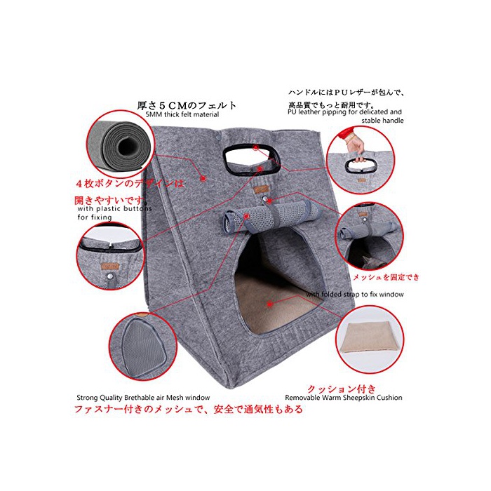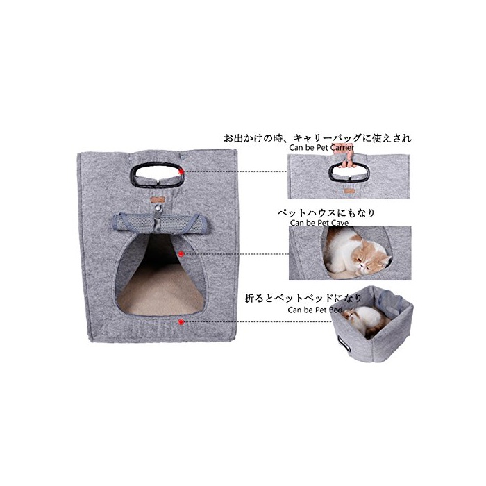 원본상품명:JUSH 多機能 フェルト猫ハウス 折り犬小屋 キャリ?バッグ ペット外出用 マット付き (グレ?)