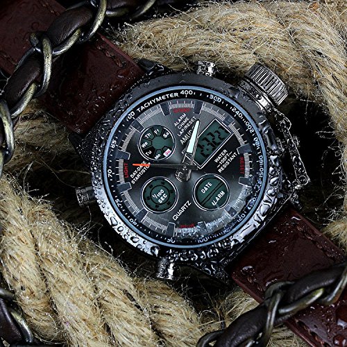 100%新しいと高品質の贅沢に設計された男性スポーツデジタル腕時計 男性用スポーツウォッチアナログデジタル 日付、 日、 アラーム、 ストップウォッチ、 ledバックライトmulifunction 防水50m 良質の柔らかいpuレザーストラップ 仕様 ケース素材: ステンレス鋼 ケース径: 46mm 厚さ: 12mm ケース径: 4.6センチメートル バンド素材:ハンドメイドの本革 バンドの長さ: 25cm( ケース付属) バンド幅: 2.2センチメートル バンドの色: 茶色 重量: 130g どんなものが含まれる 真新しい100% 1×の贅沢に設計されたスポーツのメンズ腕時計 スタイル: スポーツ、 カジュアル、 ビジネス、 屋外 ディスプレイ: anolog ムーブメント: 元日本クォーツ 特徴: -高傷に強いクリスタル 元日本クォーツムtimeモジュール 時計のリューズを持 ipselectrocplatingenviromental青銅 本物のステンレス鋼backcase、 hi- ハイテクレーザーロゴ 上を歩いてエラー& plusmn 3tm耐水性Feature