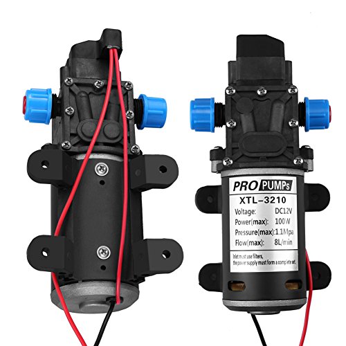 Diaphragm Pump, 12V 8L/Min High Pressure 160Psi Self Priming Water Pump for Wash, DC 100W