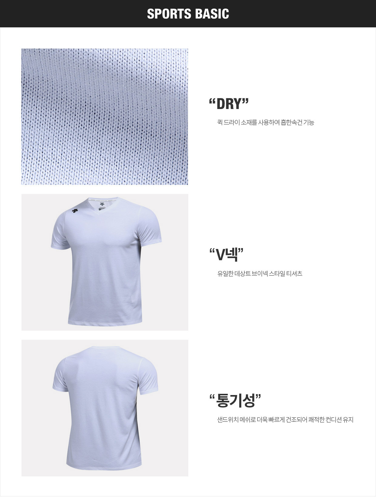 01 퀵드라이 소재를 사용하여 흡한 속건 기능이 있고, 부드러운 착장감이 특징입니다.