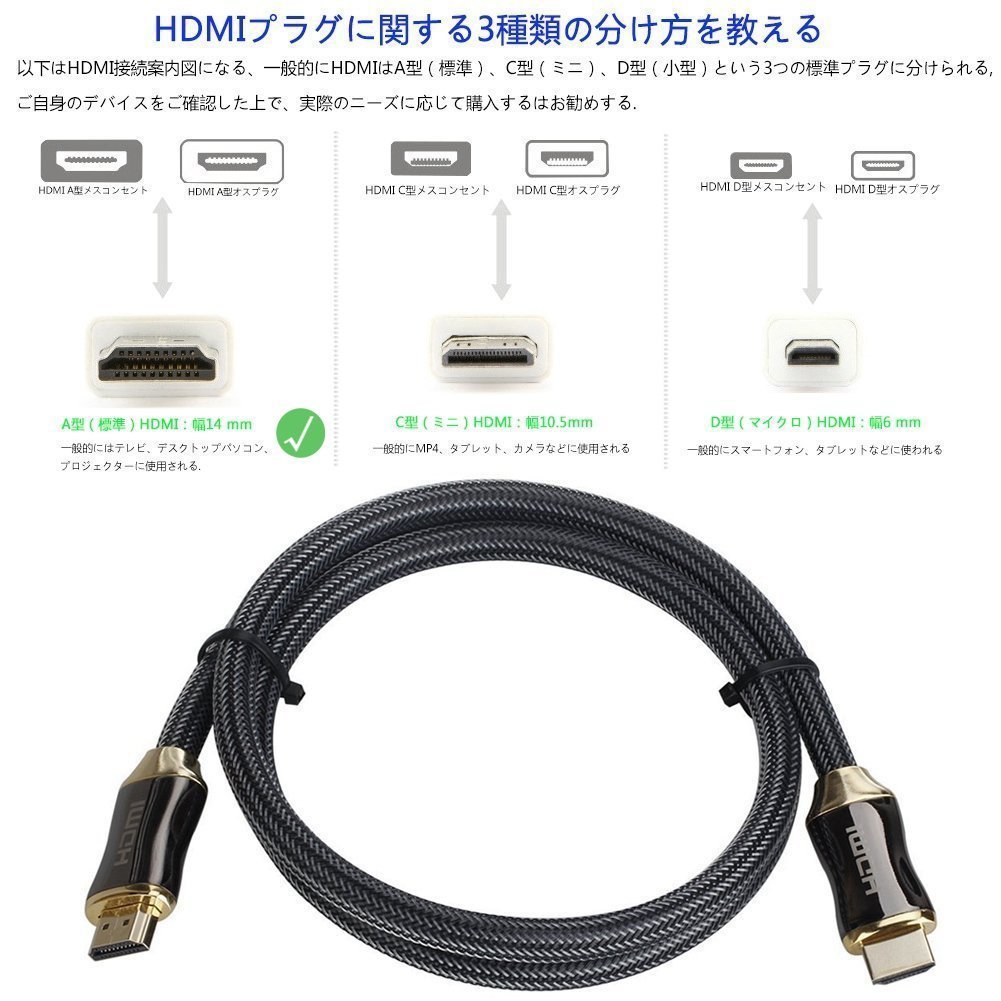 HDMI cable 2 m Ethernet 4 K 2 K high image quality 24 k gold-plated terminal HD projector TV notes Xbox PS 3 PS 4 blu ray DV etc.
