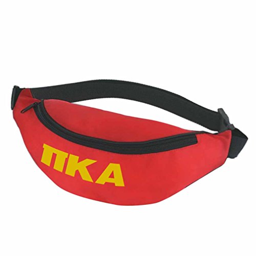 Pi Kappa Alpha Large Zippered Front Pocket Sorority Polyester Fanny Pack. Measures 14" W x 5 1/2" H. Main Zippered Compartment Adjustable Waist Strap 44" Maximum Belt Size