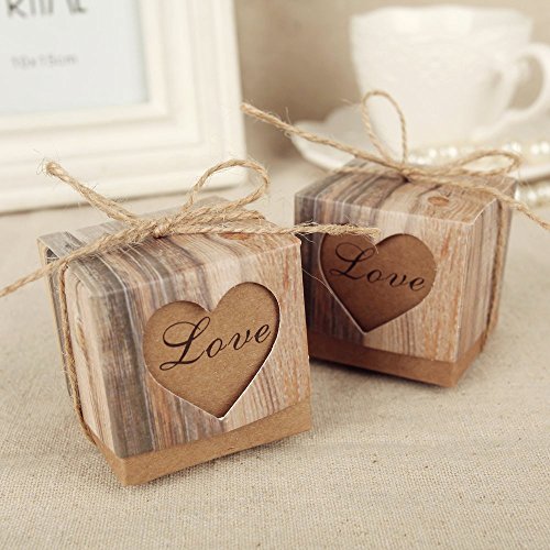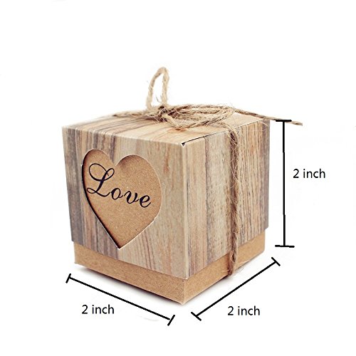 Leehome 100PCS Favor Boxes 2x2x2 Inches Love Rustic Wedding Party Candy Gift Boxes With Burlap Twine