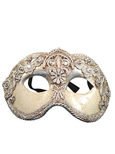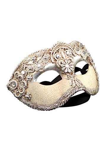 Magic of Venezia Luxury Venetian Eye Mask Colombina Mac Craquele with Macrame and Swarovski Crystals for Men and Women