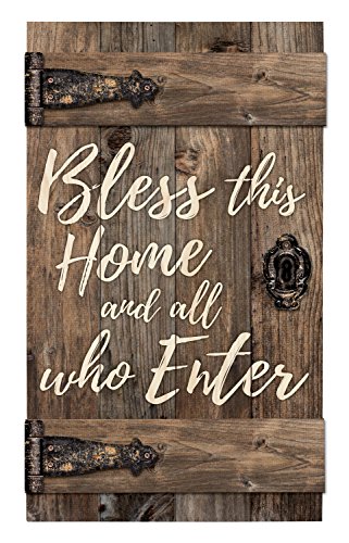Bless This Home All Who Enter Brown 14 x 24 Inch Solid Pine Wood Barn Door Wall Plaque Sign