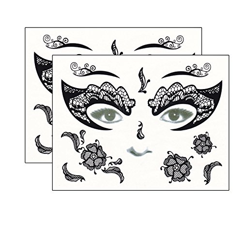 -. Title : DaLin Day of the Dead Temporary Face Tattoo Kit for Halloween - Pack of 4 Kits, Black Lace, Butterfly