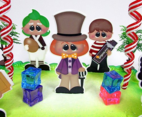 Willy Wonka Birthday Cake Topper Set Featuring Wonka & Friends and Decorative Themed Accessories
