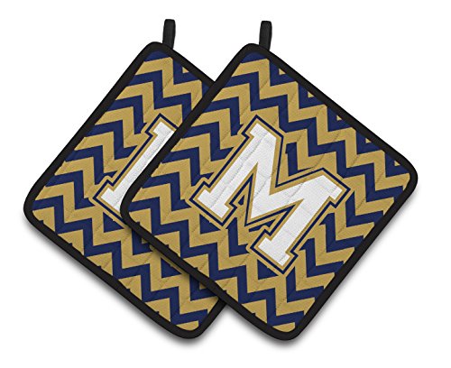 Caroline's Treasures Letter M Chevron Navy Blue & Gold Pair of Pot Holders CJ1057-MPTHD, 7.5HX7.5W, Multicolor