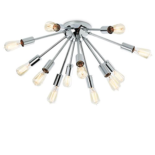 Description: One 12-socket chrome ceiling flush mount fixture with matching stem and canopy. A perfect way to add a contemporary addition to any space.
