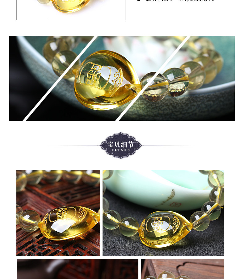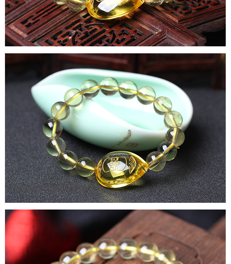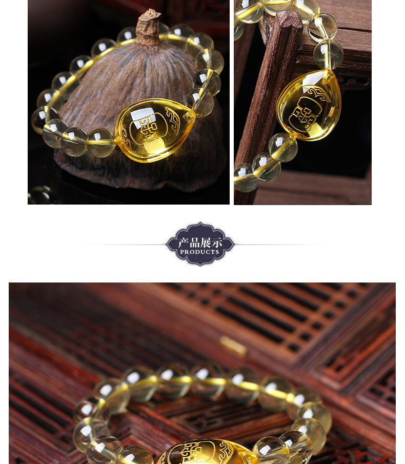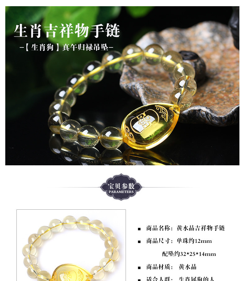 开光黄水晶生肖狗戌甲化岁七星堂开运吉祥物戌载寅木手链