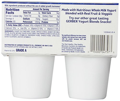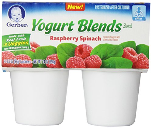 GERBER YOGURT BLENDS SNACK, RASPBERRY SPINACH, 4 COUNT, 3.5-OUNCE CUPS (PACK OF 6)