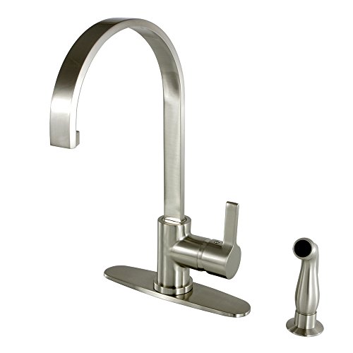 Kingston Brass GS8718CTLSP Continental 8-Inch Centerset Single Handle Kitchen Faucet with Matching Side Sprayer, 8-3/8-Inch in Spout Reach, Satin Nickel