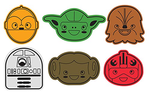 Set includes 6 cookie cutters: R2-D2, C-3PO, Yoda, Chewbacca, Princess leia and X-Wing Pilot Luke.