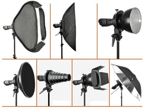 Universal for Bowens' port, and compatible with most Studio Flash accessories, such as softbox, standard reflector. An adapter support and adjusting the flash angle (180 degrees), for fill light in different directions.